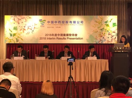 8月15日,中藥控股投資者推薦會(huì )暨2018年中期業(yè)績(jì)發(fā)布會(huì )在香港召開(kāi)。發(fā)布會(huì )是采用線(xiàn)上線(xiàn)下同步的方式舉行。中藥控股董事局主席吳憲,總裁王曉春,副總裁趙東吉,首席財務(wù)官司徒民作為主講嘉賓出席發(fā)布會(huì )。