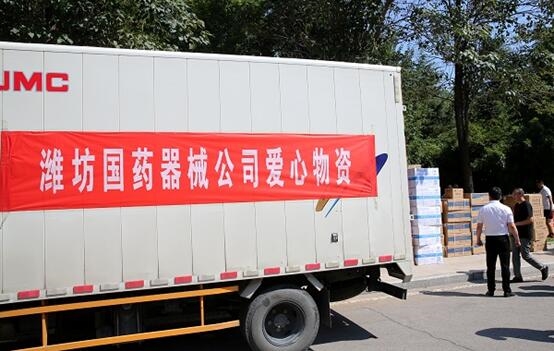 2018年8月19日,山東濰坊壽光地區受臺風(fēng)“溫比亞”侵襲,遭遇多年未遇的洪澇災害,彌河沿岸洪水倒灌,造成大量農田被淹、蔬菜大棚坍塌,群眾被迫轉移。災難面前,國藥器械山東公司立即啟動(dòng)應急響應,向災區人民奉獻愛(ài)心。