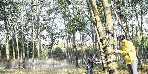 11月22日,江西省分宜縣中國林科院亞熱帶林業(yè)實(shí)驗中心樹(shù)木園內,技術(shù)人員在查看霍山米斛的生長(cháng)情況。 袁建兵攝