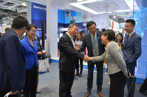 本屆進(jìn)博會(huì )醫療器械及醫療保健展區一位難求,但是全球醫療器械最大企業(yè)美敦力占據醒目位置。11月6日,美敦力展位迎來(lái)國藥集團董事長(cháng)、黨委書(shū)記劉敬楨,國藥集團副總經(jīng)理石晟怡,國藥控股副總裁、國藥器械總經(jīng)理李楊一行。美敦力介紹了最新技術(shù)進(jìn)展,現場(chǎng)展示了介入心臟起搏器、O型臂術(shù)中影像系統、脊柱手術(shù)機器人等高科技產(chǎn)品。7日下午,雙方現場(chǎng)簽署醫療器材產(chǎn)品采購“大單”。兩大集團公司強強攜手,為中國引進(jìn)世界先進(jìn)的醫療設備和器械,服務(wù)中國醫療衛生事業(yè),為增進(jìn)中國人民健康保駕護航。