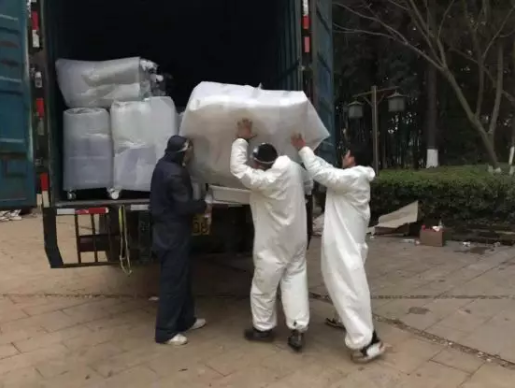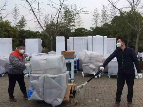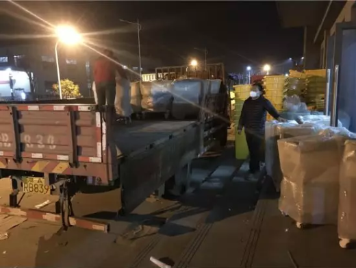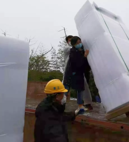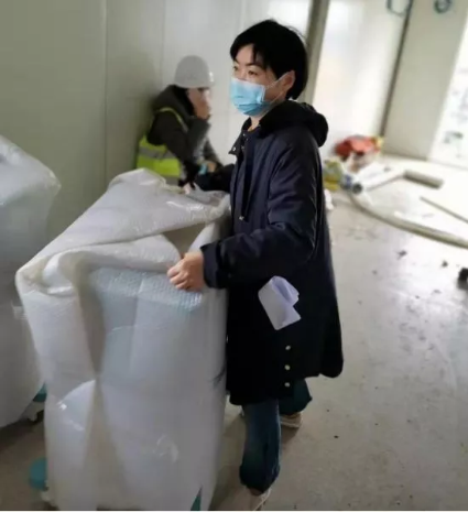 國藥衛勤公司質(zhì)量部負責人葉麗娟得知醫院急需工作人員后,放棄休假,主動(dòng)請纓從安徽老家開(kāi)車(chē)返回武漢抗疫一線(xiàn),并在醫院現場(chǎng)組織九人的工作團隊。他們中有有青年志愿者,有貨車(chē)司機,有裝修工人,甚至連環(huán)衛工人都參與到裝卸和搬運的工作中。他們不辭辛苦,不計報酬,在庫房和醫院間連續往返工作24個(gè)小時(shí),徹夜裝卸搬運貨物五百余件。任務(wù)緊急,人力不足,工地現場(chǎng)沒(méi)有叉車(chē)等運輸工具,甚至連道路都尚未鋪好。在這種環(huán)境下,大家硬是肩挑手扛,用人力一步步把上百斤的醫療物資扛到病房。