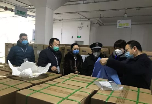 2020年2月15日,北京市藥監局相關(guān)領(lǐng)導第一時(shí)間到現場(chǎng)查看物資籌備情況,并完成首批應急防控物資調出,國藥器械北京公司經(jīng)營(yíng)班子及相關(guān)部門(mén)負責人參與物資交付。