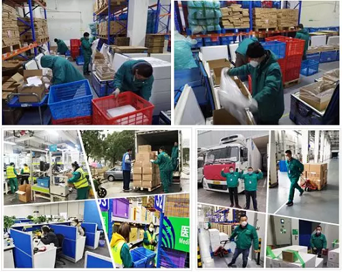 國藥物流各地子公司實(shí)行24小時(shí)接收發(fā)貨訂單,倉庫現場(chǎng)24小時(shí)值班。接到相關(guān)醫院的訂單后,2小時(shí)內即將物資發(fā)出。配送員工以車(chē)為家,風(fēng)餐露宿、星夜兼程,克服低溫雨雪、高速封路等困難,以“逆行者”的果敢、“神行者”的速度,英勇馳騁于防抗疫情的各個(gè)戰場(chǎng)之間。