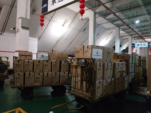 ——中國能建集團捐贈物資,2月15日高效完成了從北京首都機場(chǎng)入境落地、海關(guān)清關(guān)、機場(chǎng)和東四環(huán)兩地提貨到中鐵起運的全部環(huán)節,2月16日早上9點(diǎn)武漢簽收,全程僅用24小時(shí)。