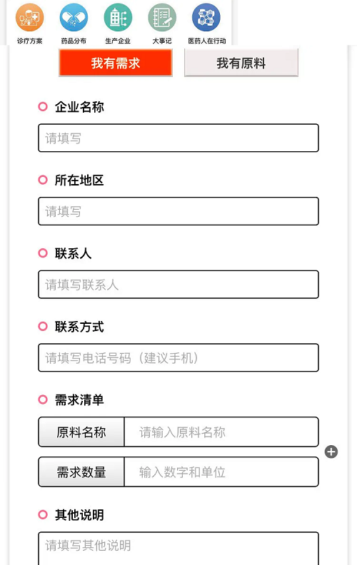 在「原料供需在線(xiàn)填報」頁(yè)面,您可以發(fā)布供應和需求信息,平臺將完成審核工作并協(xié)助對接。