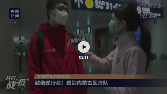 這也是繼2月8日央視《元宵晚會(huì )》播出國藥北方醫院首批援鄂醫療隊出征照片,2月27日央視《新聞聯(lián)播》播出國藥北方醫院第二批援鄂醫療隊出征鏡頭后,國藥北方醫院援鄂醫療隊第三次亮相央視。