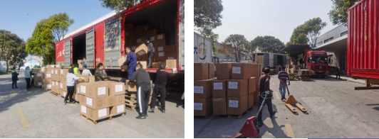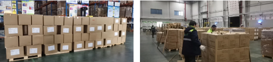 物流中心徐榮經(jīng)理立即通知剛完成561托口罩任務(wù)的第一批員工繼續投入到新的任務(wù)中。12個(gè)小時(shí)的不間斷工作,傍晚20時(shí),援外物資順利運送到浦東機場(chǎng)自貿區倉庫。