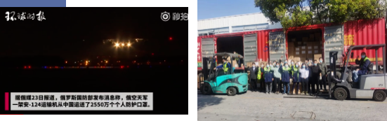 18個(gè)小時(shí)的緊張工作,總計561托口罩將搭乘專(zhuān)機運抵俄羅斯。新一天朝陽(yáng)升起,還有艱巨的任務(wù)在等待他們。