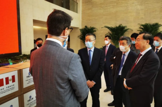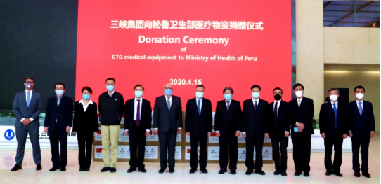 4月15日上午,國藥集團董事長(cháng)、黨委書(shū)記劉敬楨,國藥集團副總經(jīng)理、國藥國際董事長(cháng)石晟怡,國藥國際所屬?lài)幫赓Q總經(jīng)理丁維佐,國藥集團董事長(cháng)秘書(shū)魯保才等共同出席三峽集團向秘魯捐贈醫療物資儀式。