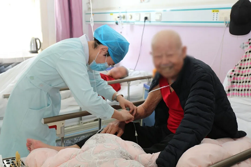 國藥北方醫院呼吸內科,第二批援鄂醫療隊隊員劉晶晶援鄂返崗后,為患者進(jìn)行靜脈輸液治療。