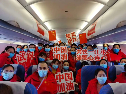 國藥重慶西南鋁醫院胡曉鳴響應號召,加入重慶第十四批支援武漢醫療隊,下午出發(fā)前一刻飛機上的合影。
