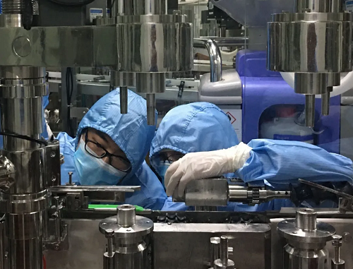 國藥現代致君制藥設備部員工小心翼翼維護、呵護著(zhù)生產(chǎn)設備。