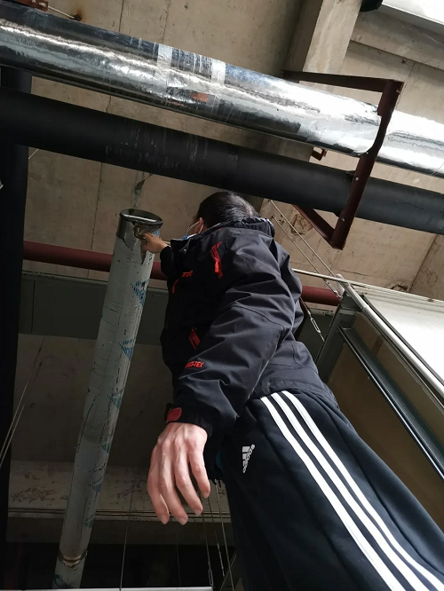 國藥中國生物武漢公司工程部楊秀勇到車(chē)間夾層檢查注射用水管道運行情況。