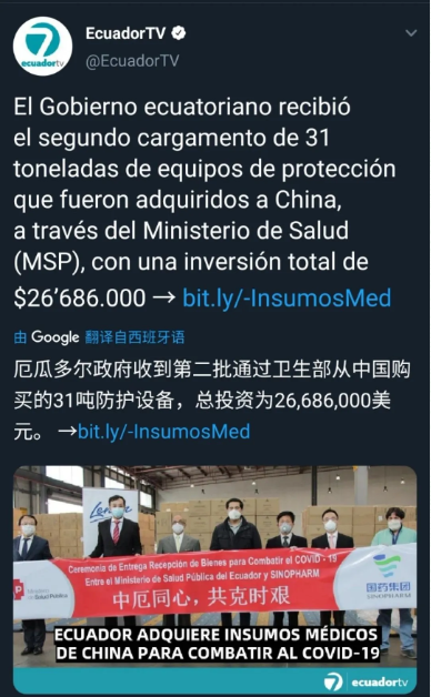 據世衛組織5月底發(fā)布消息,“南美已成為新冠疫情新震中”。而厄國檢測感染率據報道已超過(guò)36%,目前確診人數接近6萬(wàn)名,急需大批抗疫物資。