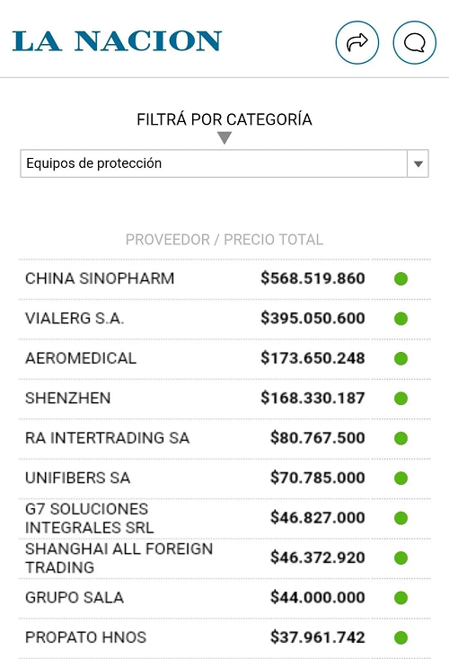 近日,阿根廷《國家報》發(fā)布了一份向阿根廷政府提供抗擊新冠疫情醫療產(chǎn)品的供應商名單,國藥集團國藥國際在個(gè)人防護用品類(lèi)產(chǎn)品全球供應商中位列榜首。此前,國藥國際已向阿根廷供應了300萬(wàn)個(gè)醫用外科口罩、30萬(wàn)件醫用一次性防護服等抗疫物資。截至7月4日,14個(gè)批次的物資已分別搭乘專(zhuān)機全部運抵阿根廷首都布宜諾斯艾利斯。