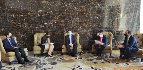 2020年8月24日,受?chē)幖瘓F董事長(cháng)劉敬楨委托,國藥集團生物制品事業(yè)部總裁朱京津在阿聯(lián)酋阿布扎比會(huì )見(jiàn)智利外交部副部長(cháng)(兼貿易部副部長(cháng))Rodrigo Yáñez先生和智利駐阿聯(lián)酋大使Jorge Daccarett先生一行。Rodrigo Yáñez副部長(cháng)代智利政府轉交致國藥集團劉敬楨董事長(cháng)的信函,朱京津總裁代劉敬楨董事長(cháng)向智利政府和人民表達友好慰問(wèn)。