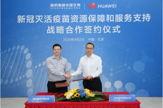 9月2日,國藥集團中國生物與華為技術(shù)有限公司在京簽署新冠滅活疫苗資源保障和服務(wù)支持戰略合作協(xié)議,雙方將攜手抗擊新冠疫情、保障員工健康,同時(shí)在疾病預防、生物技術(shù)應用創(chuàng )新等方面展開(kāi)跨界合作。