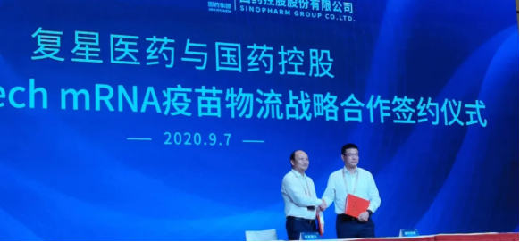 2020年9月7日,國藥控股股份有限公司(“國藥控股” ,股票代碼01099.HK)與上海復星醫藥(集團)股份有限公司(“復星醫藥”,股票代碼 600196.SH、02196.HK)簽署關(guān)于BioNTech mRNA 新冠疫苗的物流戰略合作協(xié)議,共同推進(jìn)疫苗商業(yè)化及供應鏈服務(wù)。