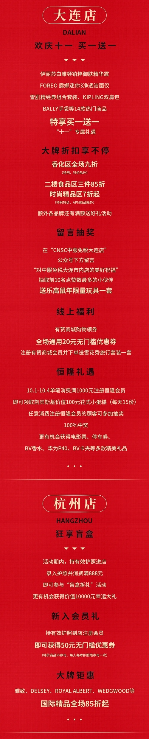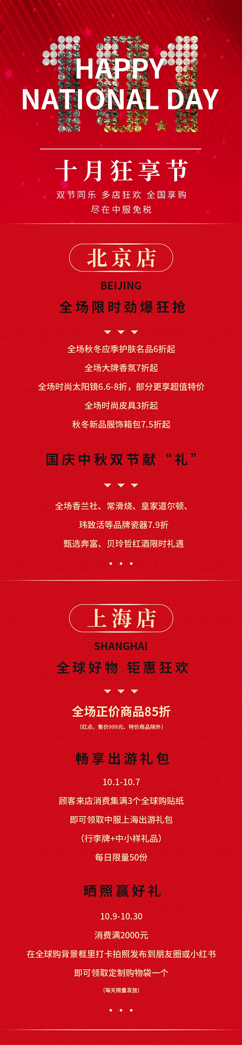 全球好物!店店狂歡!中服免稅“十月狂享節”來(lái)啦~~