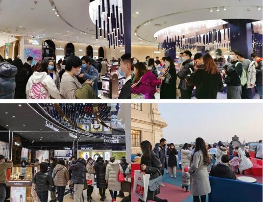 新老顧客購物熱情高漲,店內各品牌專(zhuān)柜前紛紛排起長(cháng)隊