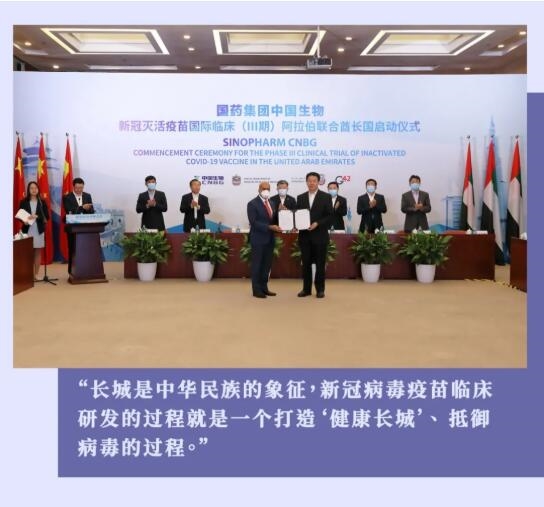 2020年7月15日,就在長(cháng)城團隊到達阿聯(lián)酋的一周之內,阿布扎比衛生部長(cháng)成為首位接種了國藥中國生物疫苗的志愿者。是什么讓這位政要對中國朋友如此信任,朱京津回憶說(shuō),“當會(huì )見(jiàn)部長(cháng)時(shí),他主動(dòng)提出要第一個(gè)接種疫苗。他認為,在阿聯(lián)酋開(kāi)展Ⅲ期臨床試驗必定充滿(mǎn)挑戰,我信任國藥集團的產(chǎn)品,愿意當這個(gè)‘第一人’。”