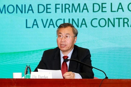 國藥集團董事長(cháng)劉敬楨在致辭中表示,在中國外交部等部委的指導和支持下,在阿爾塞總統的親自推動(dòng)下,玻利維亞國家藥品與衛生技術(shù)局已正式批準國藥集團中國生物新冠疫苗注冊上市,這是對我們疫苗安全性和有效性的充分信任,也是落實(shí)兩國元首共識的具體行動(dòng),開(kāi)啟了兩國在生命健康特別是生物醫藥領(lǐng)域合作的新篇章。相信國藥集團中國生物新冠疫苗一定能夠為玻利維亞的疫情防控提供有力支撐,為玻利維亞人民構筑起堅實(shí)的健康屏障。
