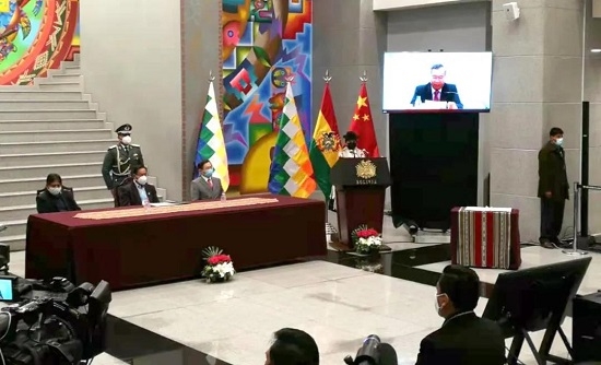 2月11日大年三十當晚,國藥集團與玻利維亞新型冠狀病毒疫苗合作簽約儀式在北京和拉巴斯以視頻會(huì )議形式舉行。