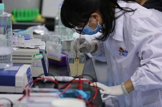 國藥動(dòng)保研發(fā)中心基礎研究部桿狀病毒表達平臺研究員,正進(jìn)行豬瘟病毒基因表達蛋白的純化鑒定。