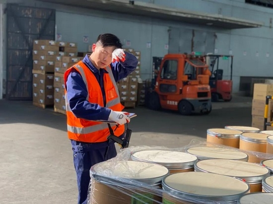 國藥試劑上海倉儲業(yè)務(wù)部驗收員,在烈日下核對送貨信息,做到“七對二完好一清晰”,保證商品入庫無(wú)差錯。