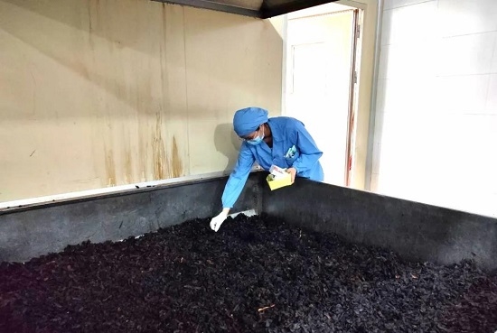 中藥控股馮了性藥材GMP質(zhì)管部QA工作人員:一手持取樣盒,一手感受藥材的溫度,做好藥材水分監測的工作是整個(gè)質(zhì)量監控過(guò)程中尤為關(guān)鍵的一步。