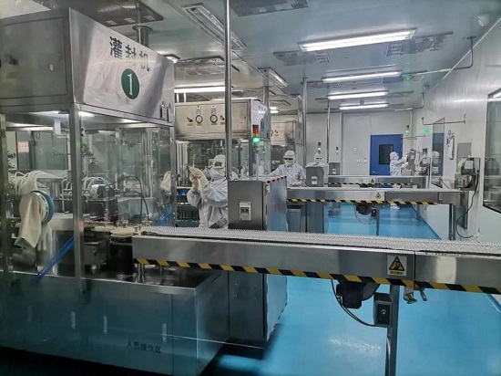 國藥現代哈森小容量注射劑2號車(chē)間灌封工序的女職工們正在無(wú)菌灌裝法莫替丁注射液,她們正在仔細檢查藥支裝量及澄明度。