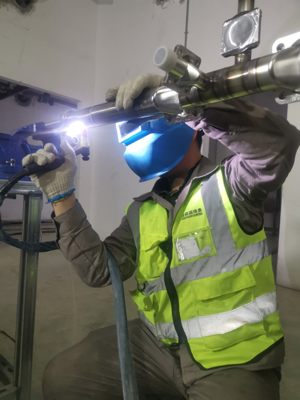 國藥國瑞泰公司執行的山東辰龍藥業(yè)無(wú)菌原料項目中,所有潔凈管道死角均嚴格按照最新ASME BPE要求,達到2D標準,處于行業(yè)領(lǐng)先水平。國藥工程此項目經(jīng)理王凱正在做焊接指導,講解潔凈管道2D的焊接要求和技術(shù)要點(diǎn)。