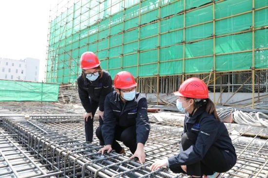 研究院工程部員工在施工現場(chǎng)對進(jìn)場(chǎng)鋼筋材料進(jìn)行核查。