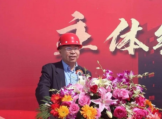 國藥集團董事長(cháng)劉敬楨宣布108號樓建設項目順利封頂。