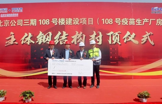 國藥集團董事長(cháng)劉敬楨、北京經(jīng)濟技術(shù)開(kāi)發(fā)區管委會(huì )主任梁勝、中國電子系統工程第四建設有限公司董事長(cháng)萬(wàn)銅良,中國生物總裁吳永林、中國生物財務(wù)總監胡立剛、中國生物副總裁張云濤及項目建設方、監理方代表等,在108號樓項目屋脊共同見(jiàn)證了這一令人激動(dòng)的時(shí)刻。