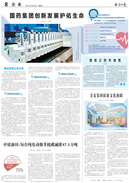 新冠病毒滅活疫苗上市并正式通過(guò)世衛組織緊急使用認證,是國藥集團實(shí)施現代國有企業(yè)制度改革成果的一個(gè)縮影。截至2020年末,國藥集團混合所有制企業(yè)數達1324家,占集團企業(yè)總戶(hù)數的93%以上,混合所有制企業(yè)的營(yíng)業(yè)收入、利潤、資產(chǎn)總額對集團的貢獻率均達到8成以上。