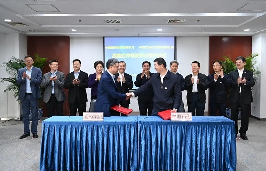 會(huì )談結束后,雙方舉行戰略合作框架協(xié)議簽約儀式,中國石化喻寶才副總經(jīng)理、國藥集團鄧金棟副總經(jīng)理代表雙方簽署協(xié)議。中國石化張玉卓董事長(cháng)、馬永生總經(jīng)理、戴照明總經(jīng)理助理、趙日峰副總裁、黃文生副總裁,國藥集團劉敬楨董事長(cháng)、楊柳副書(shū)記、董增賀副總經(jīng)理、中國生物吳永林總裁、國藥控股李楊副總裁見(jiàn)證簽約。雙方總部相關(guān)部門(mén)及相關(guān)子企業(yè)負責人同期參與會(huì )談及簽約活動(dòng)。
