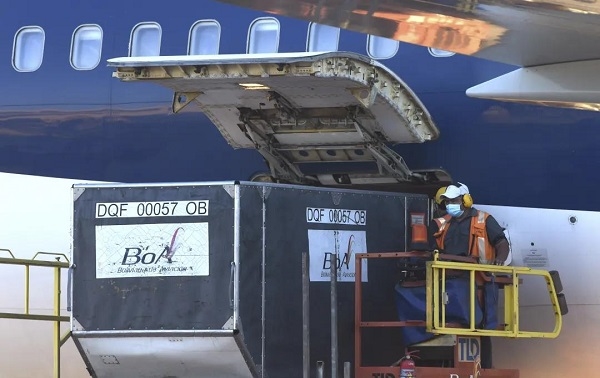 2月24日,工作人員在玻利維亞圣克魯斯的機場(chǎng)卸載中國新冠疫苗。新華社發(fā)(羅德里戈·烏拉加斯蒂攝)