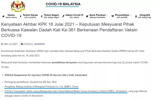 7月16日,馬來(lái)西亞衛生部總監努爾·希沙姆宣布,馬來(lái)西亞藥品監管部門(mén)批準國藥集團中國生物新冠疫苗附條件注冊上市。