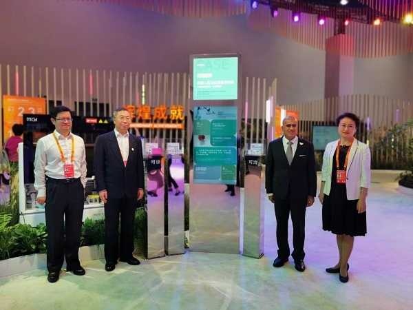 9月3日下午,阿聯(lián)酋駐華大使阿里•扎西里來(lái)到國藥集團服貿會(huì )國家會(huì )議中心展位,并與劉敬楨董事長(cháng)親切交談。劉敬楨董事長(cháng)向阿里•扎西里大使介紹了國藥集團在新冠肺炎可診、可治、可防,特別新冠疫苗研發(fā)方面取得的最近進(jìn)展。阿里•扎西里大使對國藥集團與阿聯(lián)酋方面的合作給予高度評價(jià),并表示這是國際合作的典范,希望雙方加強交流,進(jìn)一步推動(dòng)中阿兩國友誼發(fā)展。