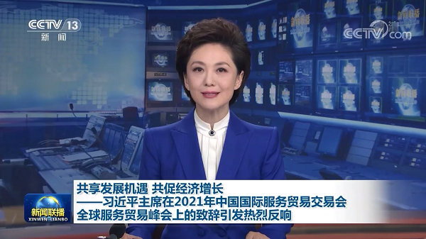 2021年9月4日央視新聞聯(lián)播報道:習近平主席在2021年中國國際服務(wù)貿易交易會(huì )全球服務(wù)貿易峰會(huì )上的致辭引發(fā)熱烈反響。與會(huì )嘉賓表示,致辭充分彰顯了中國堅持開(kāi)放合作、互利共贏(yíng),共享服務(wù)貿易發(fā)展機遇,共促世界經(jīng)濟復蘇和增長(cháng)的信心和決心,令人倍受鼓舞、倍感振奮。