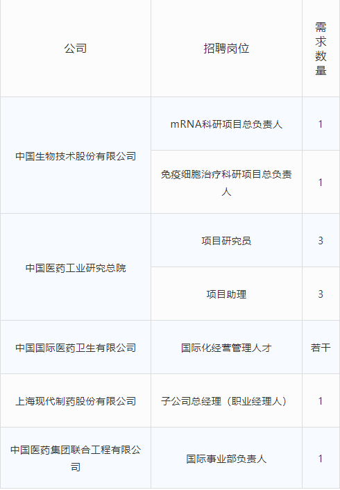 除本次公開(kāi)選聘崗位外,集團部分子公司也有職位招聘需求發(fā)布,由各子公司自行安排時(shí)間組織面試,如感興趣可自行與相應公司聯(lián)系,聯(lián)系方式見(jiàn)頁(yè)面底部或國藥集團官網(wǎng)。