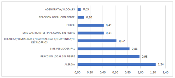 3-11歲兒童每10萬(wàn)劑中國生物新冠疫苗接種第一針后的不良反應通報率