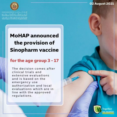2021年8月,阿聯(lián)酋增加國藥新冠疫苗3-17歲適用年齡組