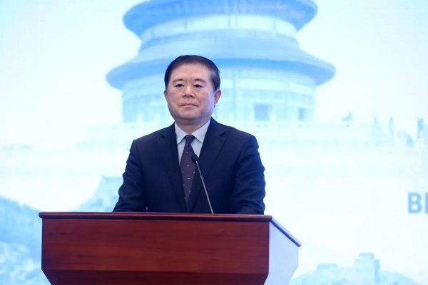 國藥集團生物制品事業(yè)部總裁朱京津在中國會(huì )場(chǎng)主持會(huì )議