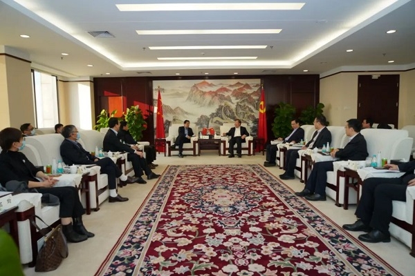 劉敬楨對夏文斌一行到訪(fǎng)表示熱烈歡迎,并介紹國藥集團最新發(fā)展情況及助力國家乃至全球抗擊新冠肺炎疫情所做的重點(diǎn)工作。他表示,愿與對外經(jīng)濟貿易大學(xué)加強交流,在人才培養、國際人才交流、拓寬國際市場(chǎng)開(kāi)發(fā)渠道、數智化轉型、決策咨詢(xún)與科研合作等方面達成戰略合作,實(shí)現優(yōu)勢互補、互惠共贏(yíng),助推雙方共同發(fā)展。