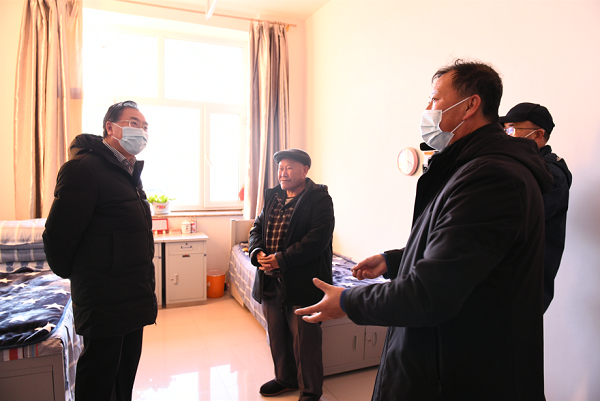在三道湖鎮福利院,調研組為孤寡老人送上了羽絨服等御寒物資,為老人們送去寒冬的溫暖和節前的祝福。