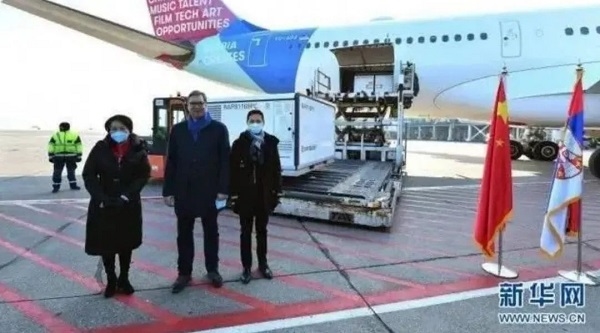 2021年1月16日,首批國藥集團中國生物新冠疫苗運抵塞爾維亞首都貝爾格萊德,塞爾維亞總統武契奇率領(lǐng)政府官員冒著(zhù)嚴寒迎接國藥疫苗。2月10日,第二批國藥集團中國生物疫苗抵塞,塞爾維亞總理布爾納比奇冒雨在機場(chǎng)迎接。