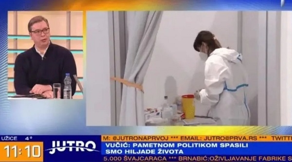 面對疫苗“免疫鴻溝”武契奇總統感嘆,“當下,搞到疫苗比搞到核武器還難。”“我們是世界上第三個(gè)從中國接收疫苗的國家”。武契奇在節目中花了很長(cháng)時(shí)間介紹國藥疫苗,并在個(gè)人Instagram賬號發(fā)布節目現場(chǎng)照片。
