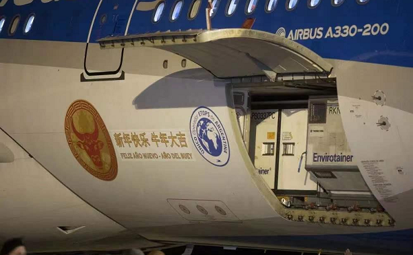 2021年2月25日,運載國藥集團中國生物新冠疫苗的包機在阿根廷布宜諾斯艾利斯機場(chǎng)落地。阿根廷政府為表達對中國的感謝,在包機上設計了中國傳統剪紙生肖牛的圖案,并用中文和西班牙文在機身印上了“新年快樂(lè ) 牛年大吉”字樣。阿根廷總統費爾南德斯在社交媒體表示“飛機運來(lái)的不僅僅是疫苗,更是生命和希望。”